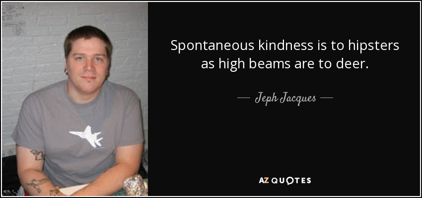 Spontaneous kindness is to hipsters as high beams are to deer.