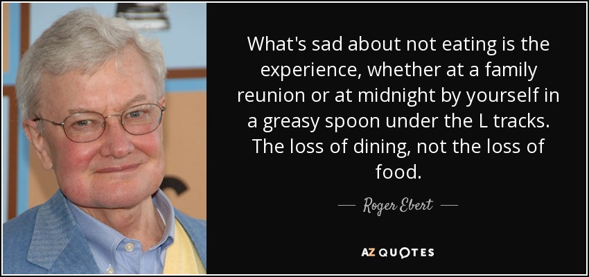 What's sad about not eating is the experience, whether at a family reunion or at midnight by yourself in a greasy spoon under the L tracks. The loss of dining, not the loss of food.