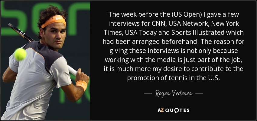 The week before the (US Open) I gave a few interviews for CNN, USA Network, New York Times, USA Today and Sports Illustrated which had been arranged beforehand. The reason for giving these interviews is not only because working with the media is just part of the job, it is much more my desire to contribute to the promotion of tennis in the U.S.