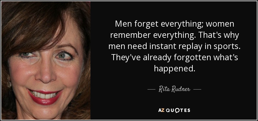 Men forget everything; women remember everything. That's why men need instant replay in sports. They've already forgotten what's happened.
