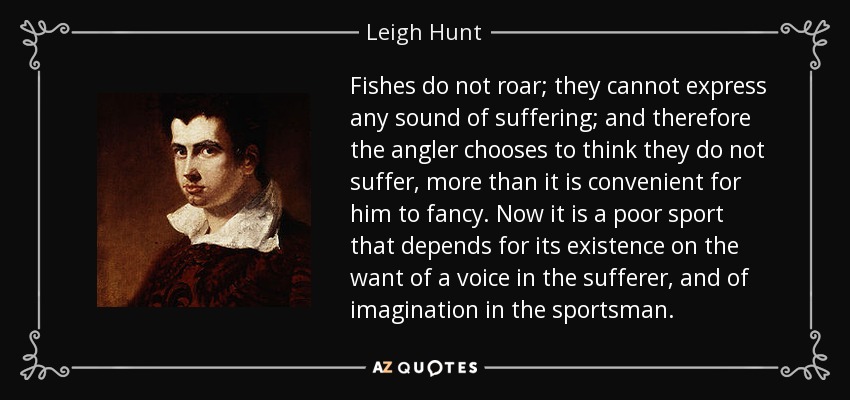 Fishes do not roar; they cannot express any sound of suffering; and therefore the angler chooses to think they do not suffer, more than it is convenient for him to fancy. Now it is a poor sport that depends for its existence on the want of a voice in the sufferer, and of imagination in the sportsman.