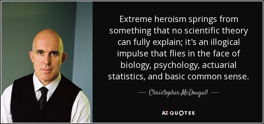 Extreme heroism springs from something that no scientific theory can fully explain; it's an illogical impulse that flies in the face of biology, psychology, actuarial statistics, and basic common sense.