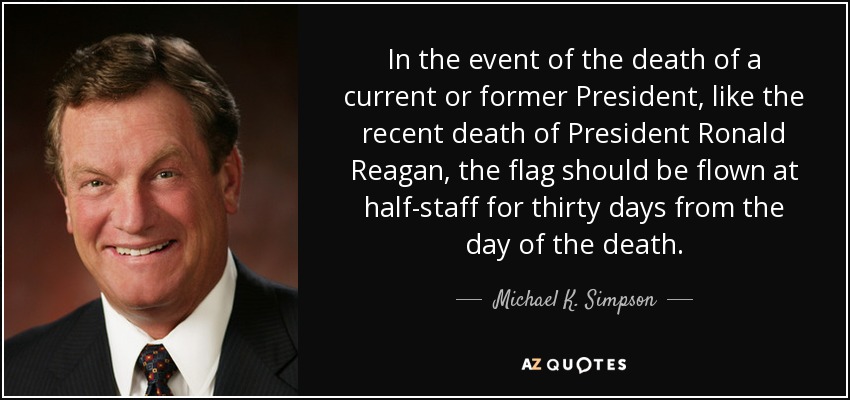 In the event of the death of a current or former President, like the recent death of President Ronald Reagan, the flag should be flown at half-staff for thirty days from the day of the death.