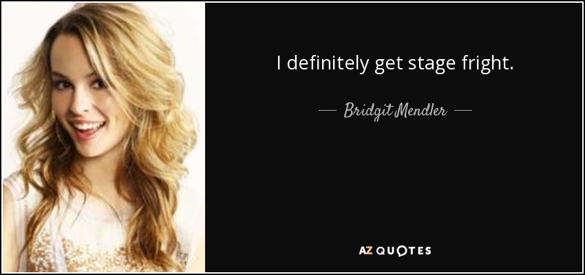 As for the stage fright, it never goes away. When I'm waiting in the wings to go on, it's agony every single time but I stay focused and I know that once I'm on stage it'll be fine; I'll be in my happy little bubble.