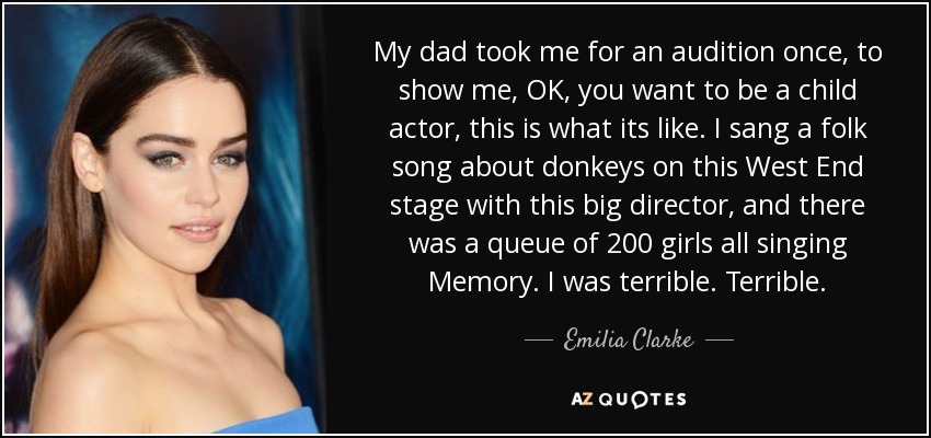 My dad took me for an audition once, to show me, OK, you want to be a child actor, this is what its like. I sang a folk song about donkeys on this West End stage with this big director, and there was a queue of 200 girls all singing Memory. I was terrible. Terrible.
