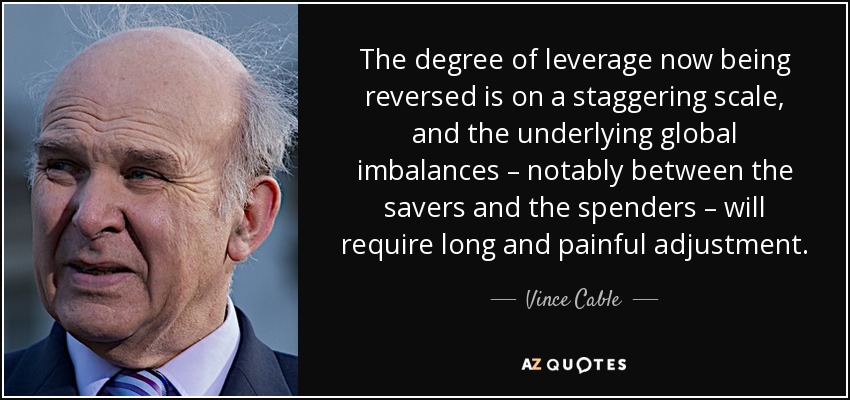 The degree of leverage now being reversed is on a staggering scale, and the underlying global imbalances – notably between the savers and the spenders – will require long and painful adjustment.