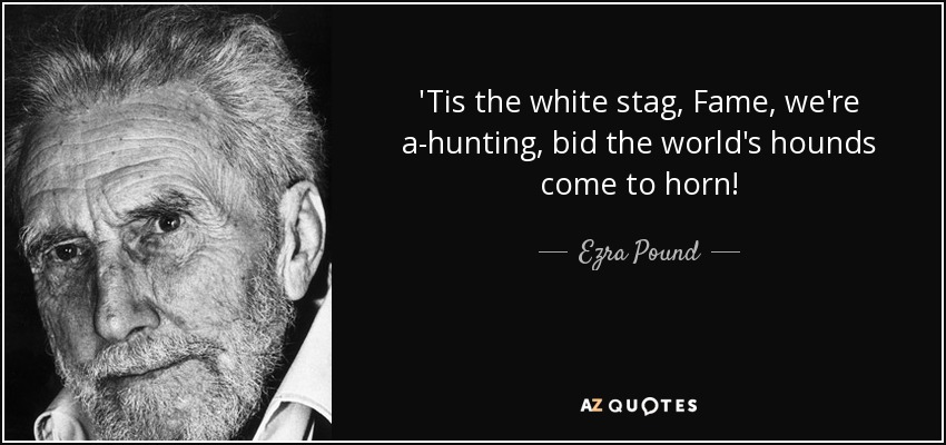 'Tis the white stag, Fame, we're a-hunting, bid the world's hounds come to horn!