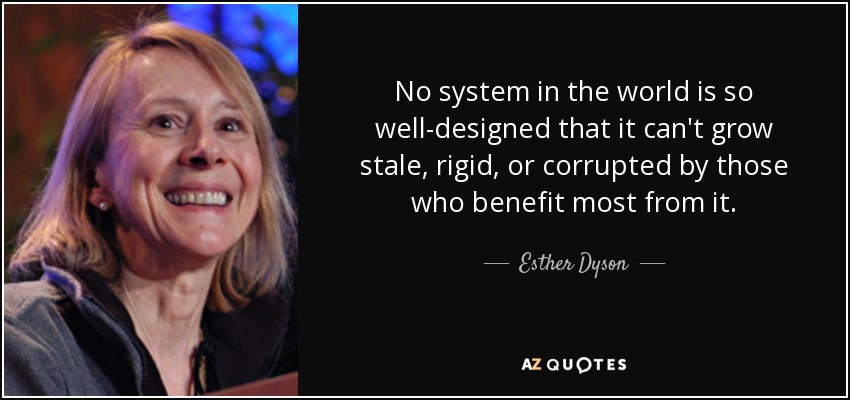 No system in the world is so well-designed that it can't grow stale, rigid, or corrupted by those who benefit most from it.