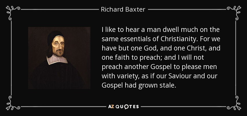 I like to hear a man dwell much on the same essentials of Christianity. For we have but one God, and one Christ, and one faith to preach; and I will not preach another Gospel to please men with variety, as if our Saviour and our Gospel had grown stale.