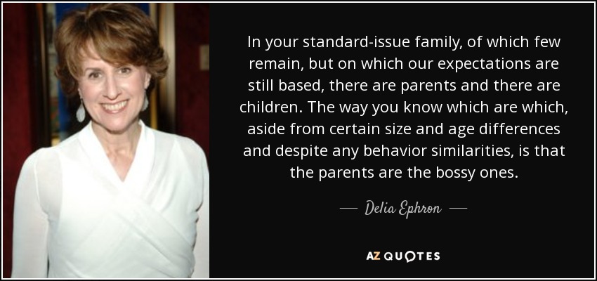 In your standard-issue family, of which few remain, but on which our expectations are still based, there are parents and there are children. The way you know which are which, aside from certain size and age differences and despite any behavior similarities, is that the parents are the bossy ones.