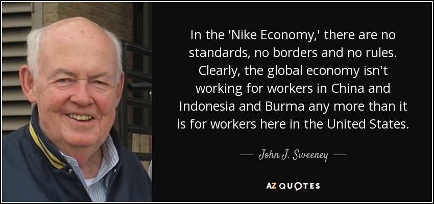 In the 'Nike Economy,' there are no standards, no borders and no rules. Clearly, the global economy isn't working for workers in China and Indonesia and Burma any more than it is for workers here in the United States.