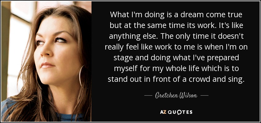 What I'm doing is a dream come true but at the same time its work. It's like anything else. The only time it doesn't really feel like work to me is when I'm on stage and doing what I've prepared myself for my whole life which is to stand out in front of a crowd and sing.