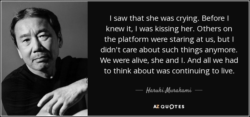 I saw that she was crying. Before I knew it, I was kissing her. Others on the platform were staring at us, but I didn't care about such things anymore. We were alive, she and I. And all we had to think about was continuing to live.