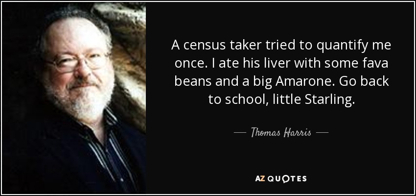 A census taker tried to quantify me once. I ate his liver with some fava beans and a big Amarone. Go back to school, little Starling.