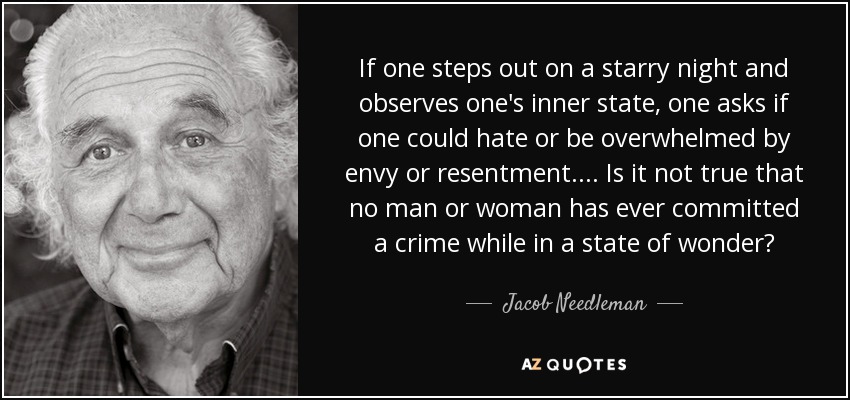If one steps out on a starry night and observes one's inner state, one asks if one could hate or be overwhelmed by envy or resentment. ... Is it not true that no man or woman has ever committed a crime while in a state of wonder?