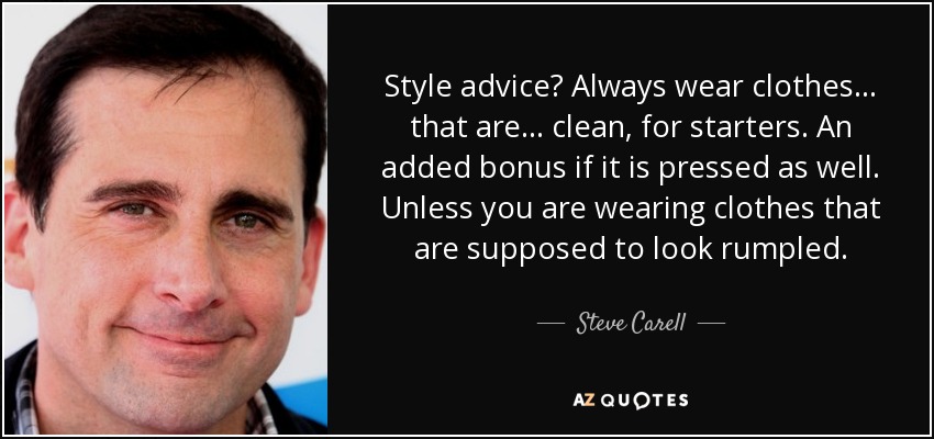Style advice? Always wear clothes... that are... clean, for starters. An added bonus if it is pressed as well. Unless you are wearing clothes that are supposed to look rumpled.
