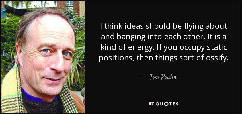 I think ideas should be flying about and banging into each other. It is a kind of energy. If you occupy static positions, then things sort of ossify.