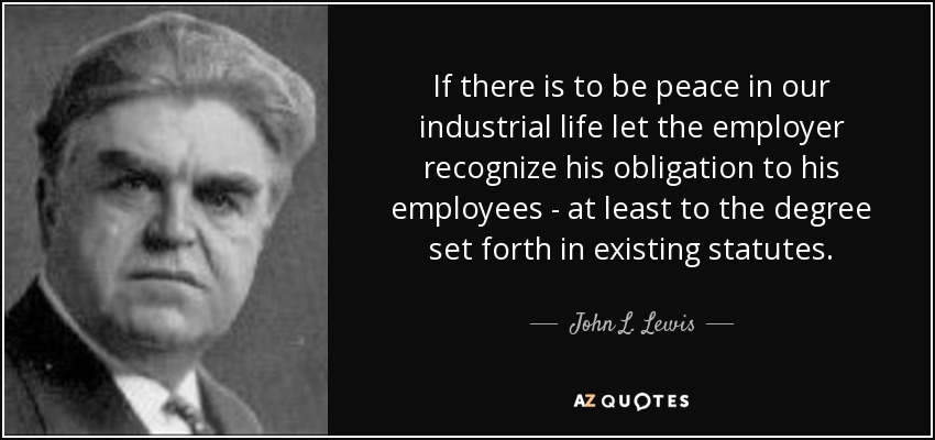 If there is to be peace in our industrial life let the employer recognize his obligation to his employees - at least to the degree set forth in existing statutes.