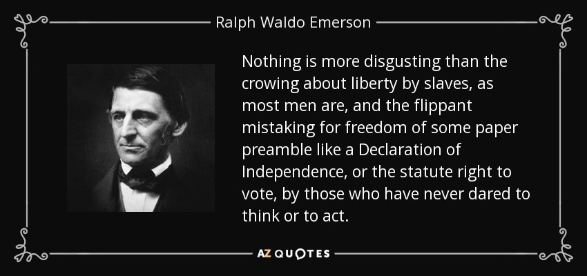 Nothing is more disgusting than the crowing about liberty by slaves, as most men are, and the flippant mistaking for freedom of some paper preamble like a Declaration of Independence, or the statute right to vote, by those who have never dared to think or to act.