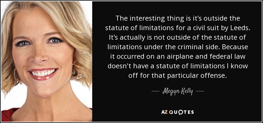 The interesting thing is it's outside the statute of limitations for a civil suit by Leeds. It's actually is not outside of the statute of limitations under the criminal side. Because it occurred on an airplane and federal law doesn't have a statute of limitations I know off for that particular offense.