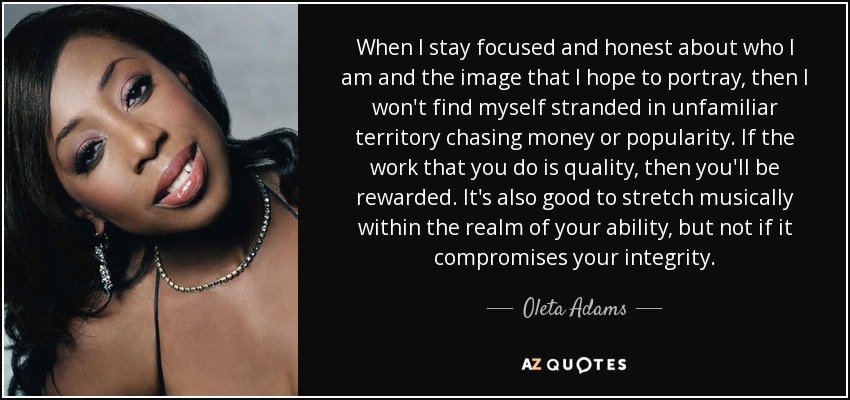 When I stay focused and honest about who I am and the image that I hope to portray, then I won't find myself stranded in unfamiliar territory chasing money or popularity. If the work that you do is quality, then you'll be rewarded. It's also good to stretch musically within the realm of your ability, but not if it compromises your integrity.