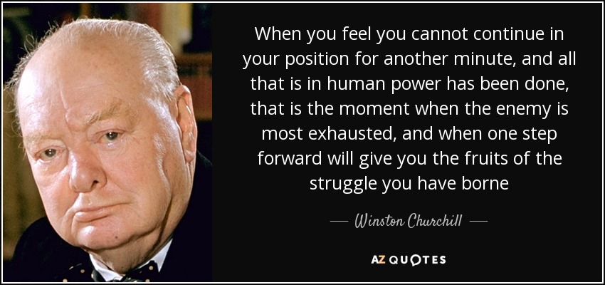 When you feel you cannot continue in your position for another minute, and all that is in human power has been done, that is the moment when the enemy is most exhausted, and when one step forward will give you the fruits of the struggle you have borne
