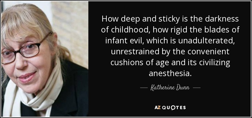 How deep and sticky is the darkness of childhood, how rigid the blades of infant evil, which is unadulterated, unrestrained by the convenient cushions of age and its civilizing anesthesia.