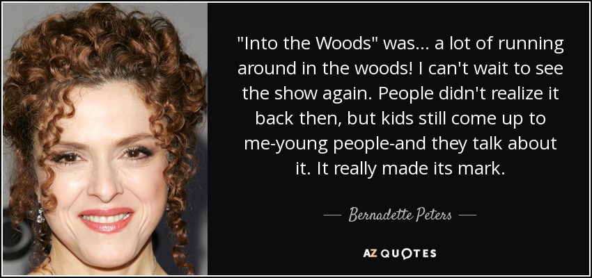 "Into the Woods" was... a lot of running around in the woods! I can't wait to see the show again. People didn't realize it back then, but kids still come up to me-young people-and they talk about it. It really made its mark.