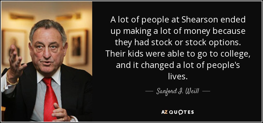 A lot of people at Shearson ended up making a lot of money because they had stock or stock options. Their kids were able to go to college, and it changed a lot of people's lives.