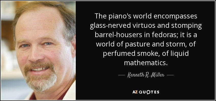 The piano's world encompasses glass-nerved virtuos and stomping barrel-housers in fedoras; it is a world of pasture and storm, of perfumed smoke, of liquid mathematics.