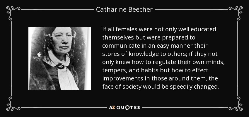 If all females were not only well educated themselves but were prepared to communicate in an easy manner their stores of knowledge to others; if they not only knew how to regulate their own minds, tempers, and habits but how to effect improvements in those around them, the face of society would be speedily changed.