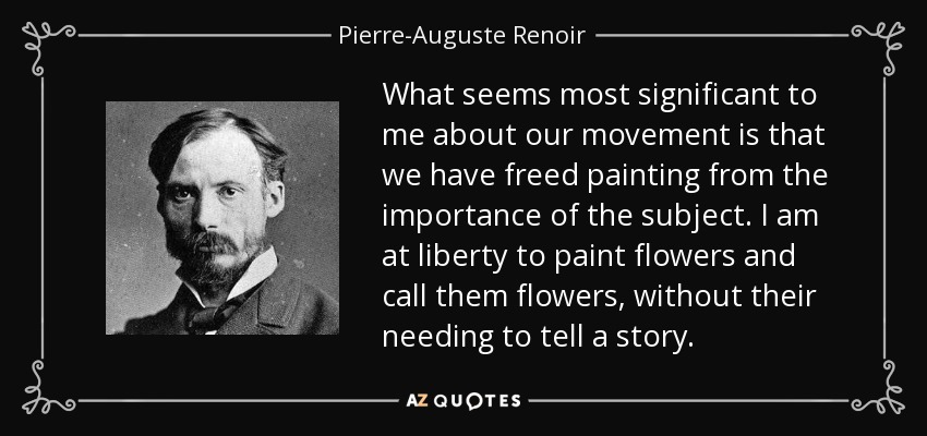 What seems most significant to me about our movement is that we have freed painting from the importance of the subject. I am at liberty to paint flowers and call them flowers, without their needing to tell a story.