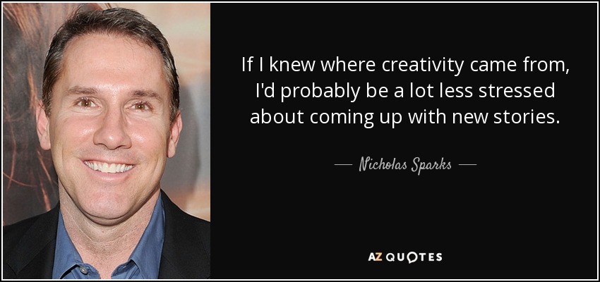 If I knew where creativity came from, I'd probably be a lot less stressed about coming up with new stories.
