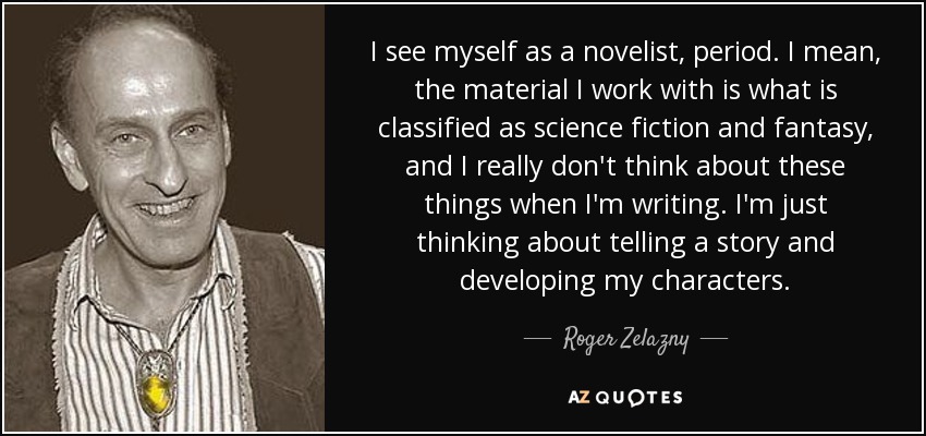 I see myself as a novelist, period. I mean, the material I work with is what is classified as science fiction and fantasy, and I really don't think about these things when I'm writing. I'm just thinking about telling a story and developing my characters.