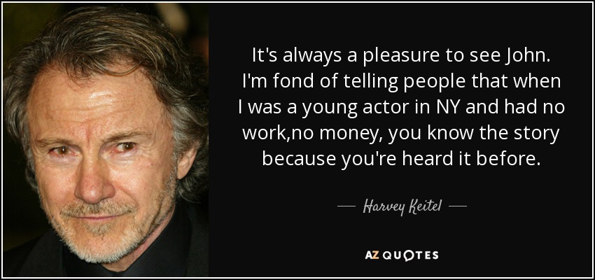 It's always a pleasure to see John. I'm fond of telling people that when I was a young actor in NY and had no work ,no money, you know the story because you're heard it before.