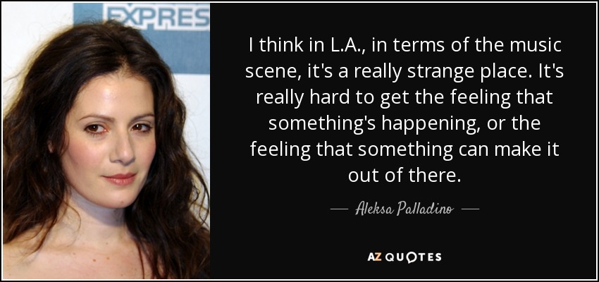 I think in L.A., in terms of the music scene, it's a really strange place. It's really hard to get the feeling that something's happening, or the feeling that something can make it out of there.