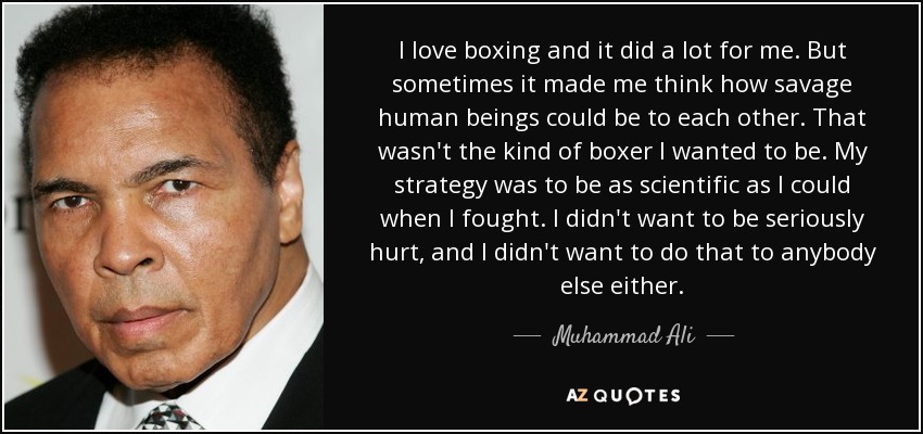 I love boxing and it did a lot for me. But sometimes it made me think how savage human beings could be to each other. That wasn't the kind of boxer I wanted to be. My strategy was to be as scientific as I could when I fought. I didn't want to be seriously hurt, and I didn't want to do that to anybody else either.