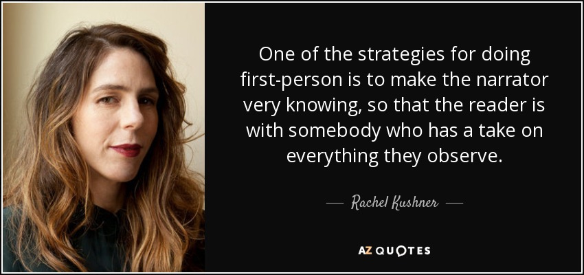 One of the strategies for doing first-person is to make the narrator very knowing, so that the reader is with somebody who has a take on everything they observe.