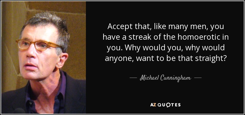 Accept that, like many men, you have a streak of the homoerotic in you. Why would you, why would anyone, want to be that straight?