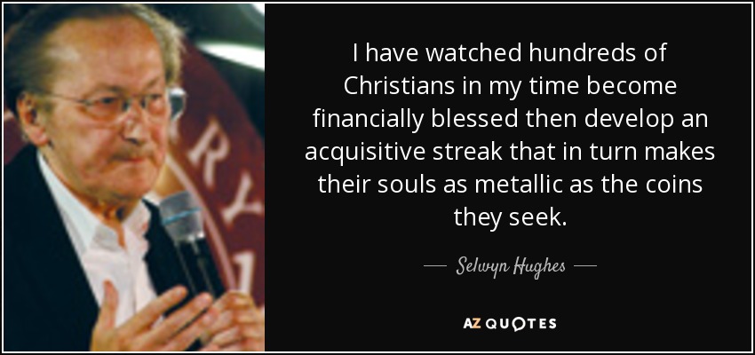 I have watched hundreds of Christians in my time become financially blessed then develop an acquisitive streak that in turn makes their souls as metallic as the coins they seek.