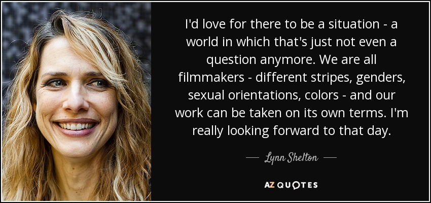 I'd love for there to be a situation - a world in which that's just not even a question anymore. We are all filmmakers - different stripes, genders, sexual orientations, colors - and our work can be taken on its own terms. I'm really looking forward to that day.