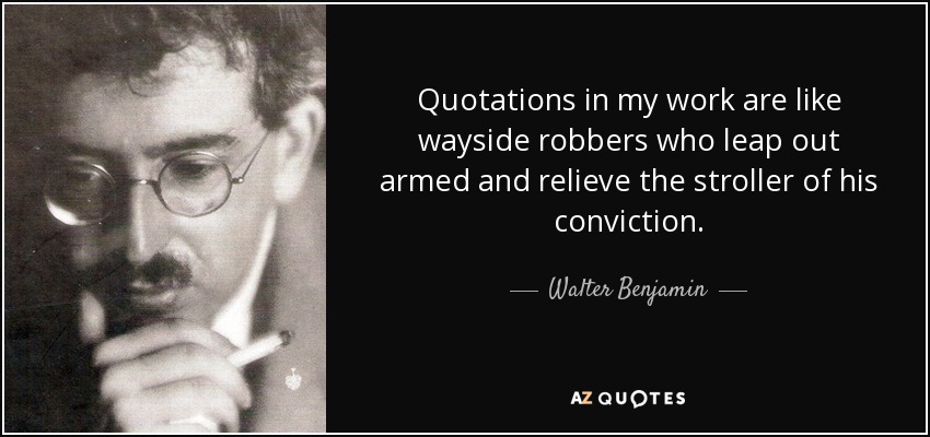 Quotations in my work are like wayside robbers who leap out armed and relieve the stroller of his conviction.