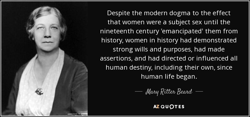 Despite the modern dogma to the effect that women were a subject sex until the nineteenth century 'emancipated' them from history, women in history had demonstrated strong wills and purposes, had made assertions, and had directed or influenced all human destiny, including their own, since human life began.