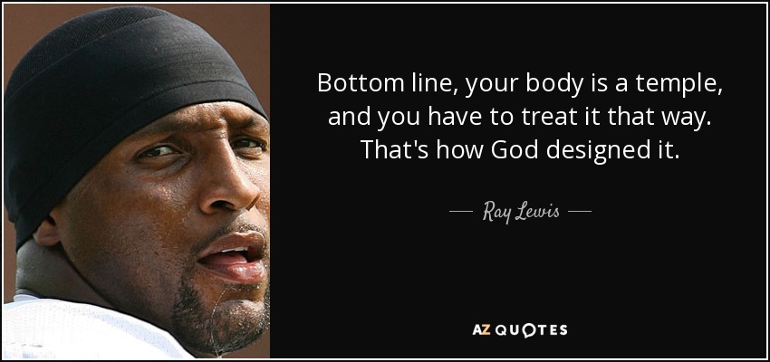 Bottom line, your body is a temple, and you have to treat it that way. That's how God designed it.