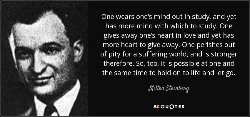One wears one's mind out in study, and yet has more mind with which to study. One gives away one's heart in love and yet has more heart to give away. One perishes out of pity for a suffering world, and is stronger therefore. So, too, it is possible at one and the same time to hold on to life and let go.