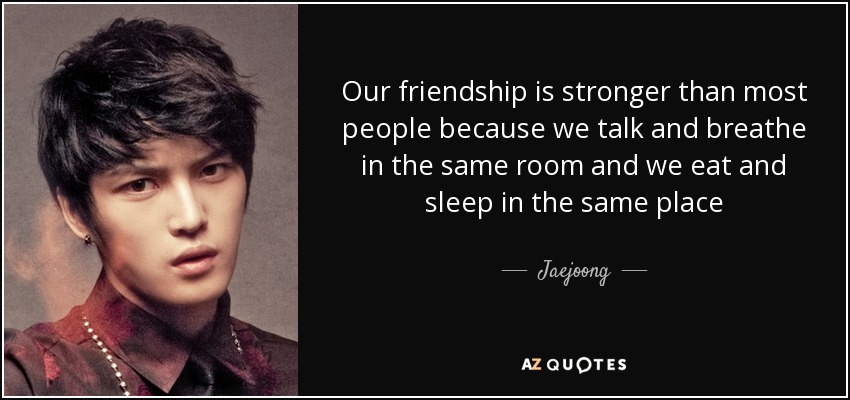 Our friendship is stronger than most people because we talk and breathe in the same room and we eat and sleep in the same place