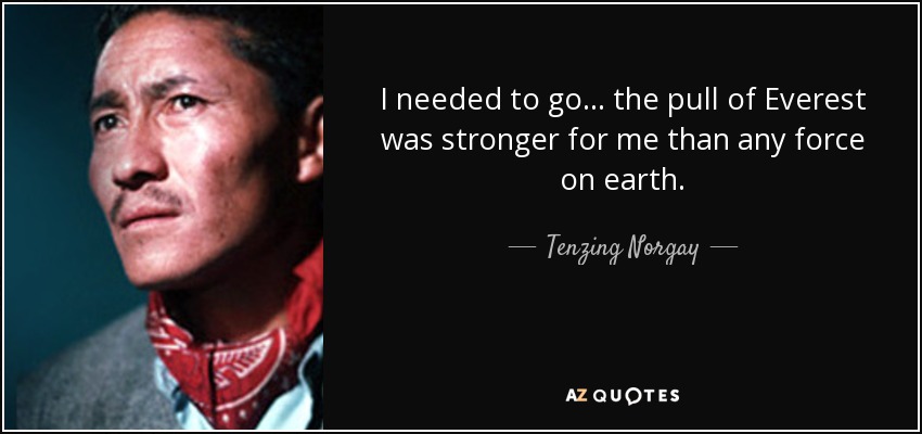 I needed to go . . . the pull of Everest was stronger for me than any force on earth.