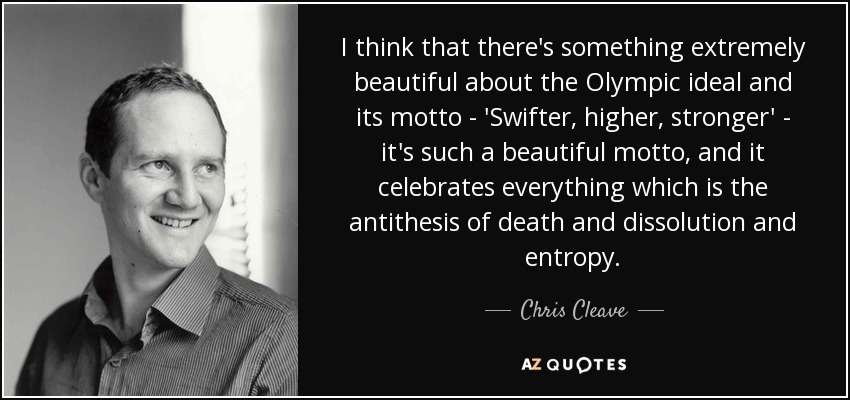 I think that there's something extremely beautiful about the Olympic ideal and its motto - 'Swifter, higher, stronger' - it's such a beautiful motto, and it celebrates everything which is the antithesis of death and dissolution and entropy.