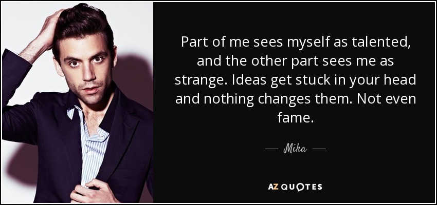 Part of me sees myself as talented, and the other part sees me as strange. Ideas get stuck in your head and nothing changes them. Not even fame.