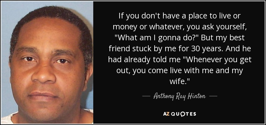 If you don't have a place to live or money or whatever, you ask yourself, "What am I gonna do?" But my best friend stuck by me for 30 years. And he had already told me "Whenever you get out, you come live with me and my wife."